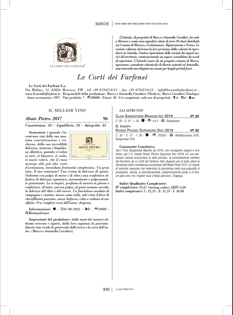 | Abate Pietro 2016 | 96 points | Abate Pietro 2017 | 96 points |